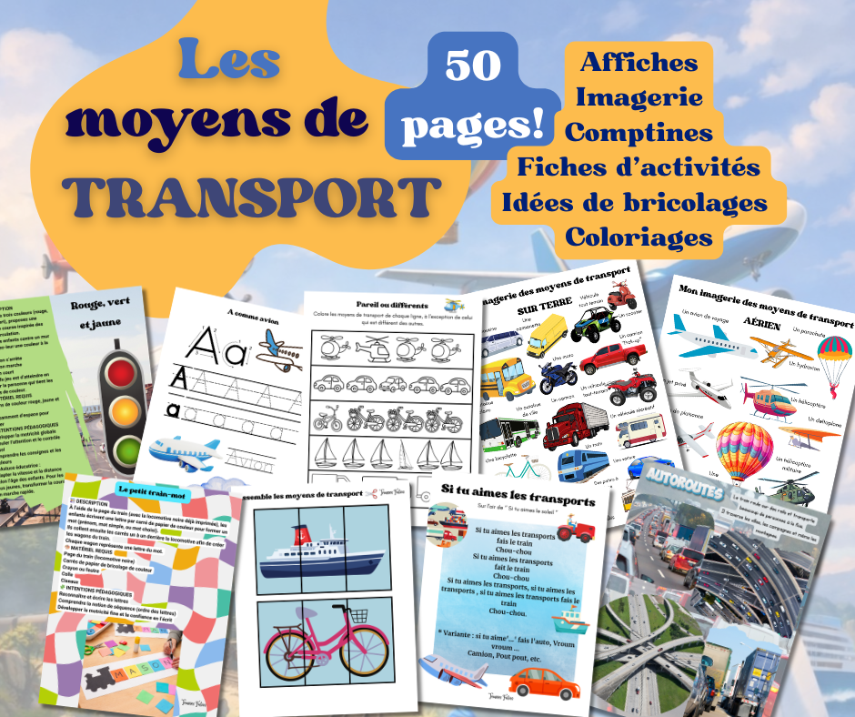 Faites découvrir aux enfants le monde fascinant des moyens de transport grâce à une trousse éducative complète, ludique et clé en main.