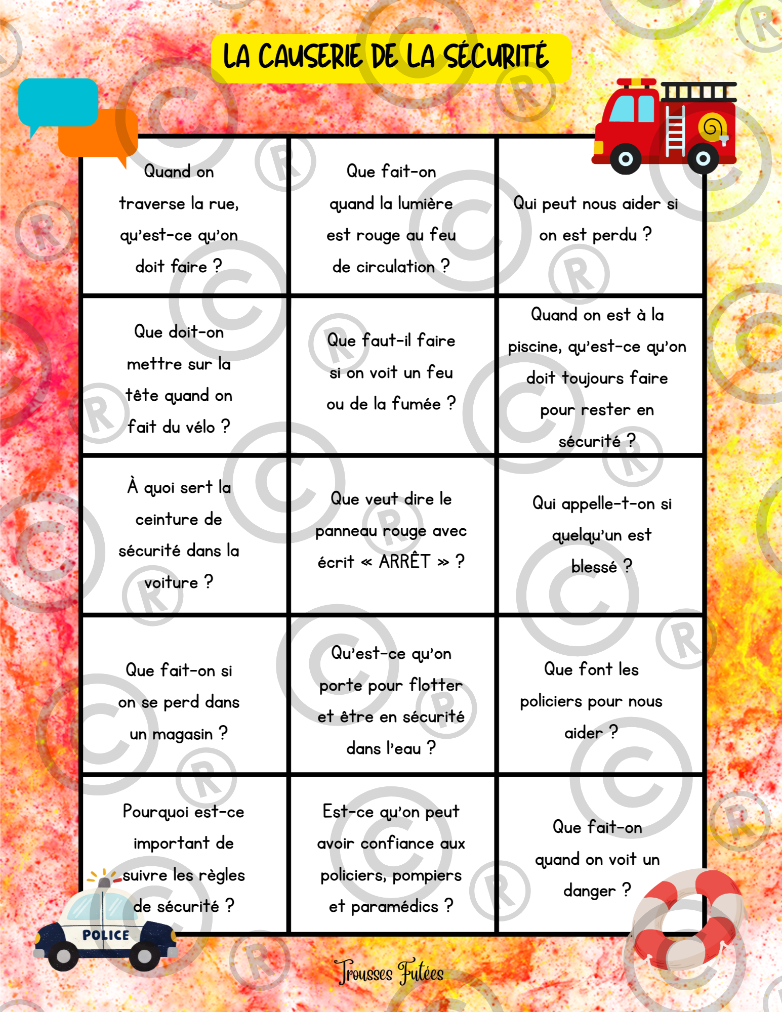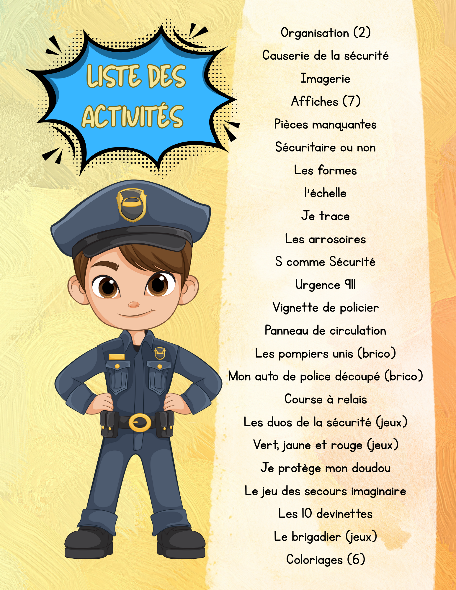 Trousse éducative 1-5 ans comprenant 45 pages d'activités sur le thème de la sécurité!