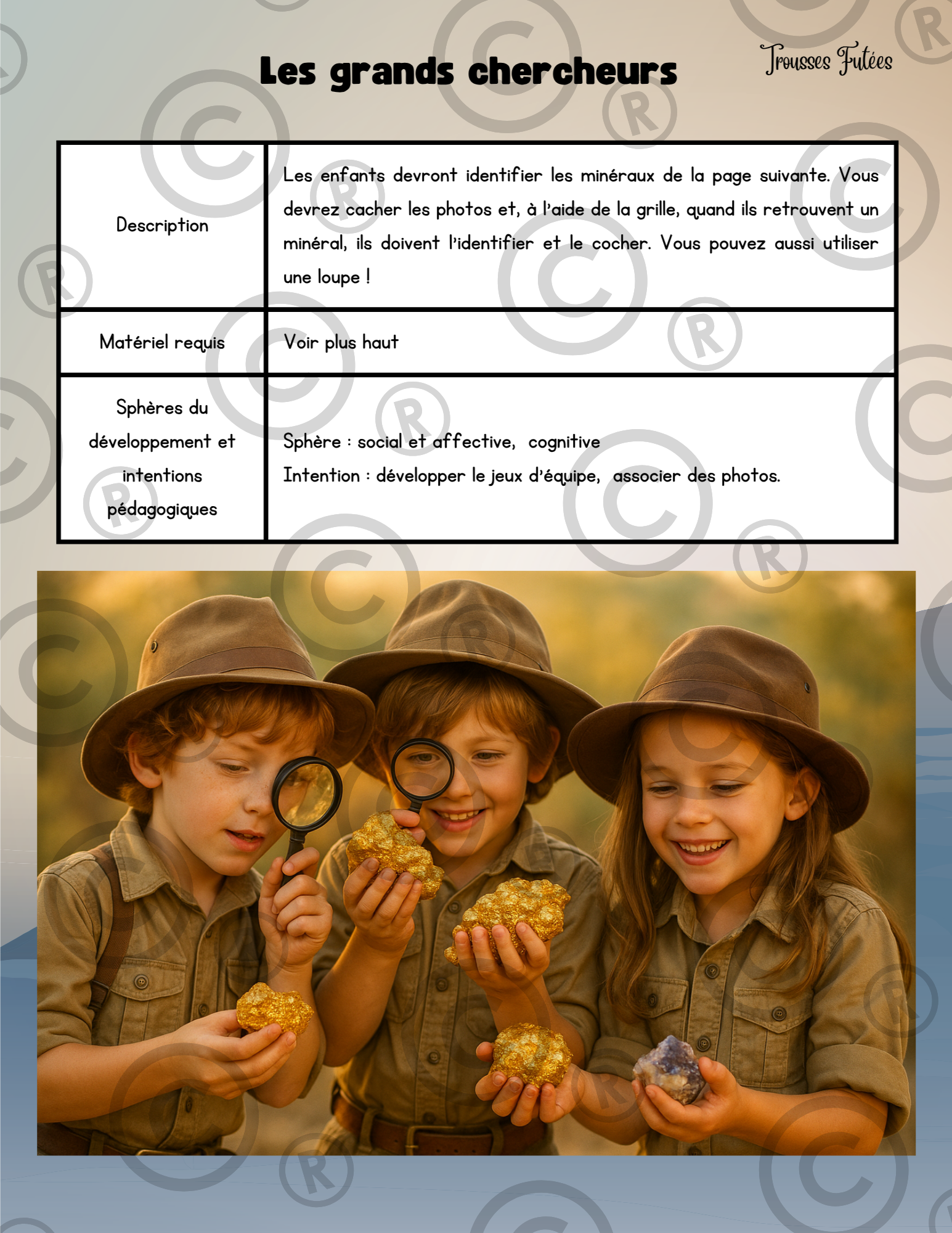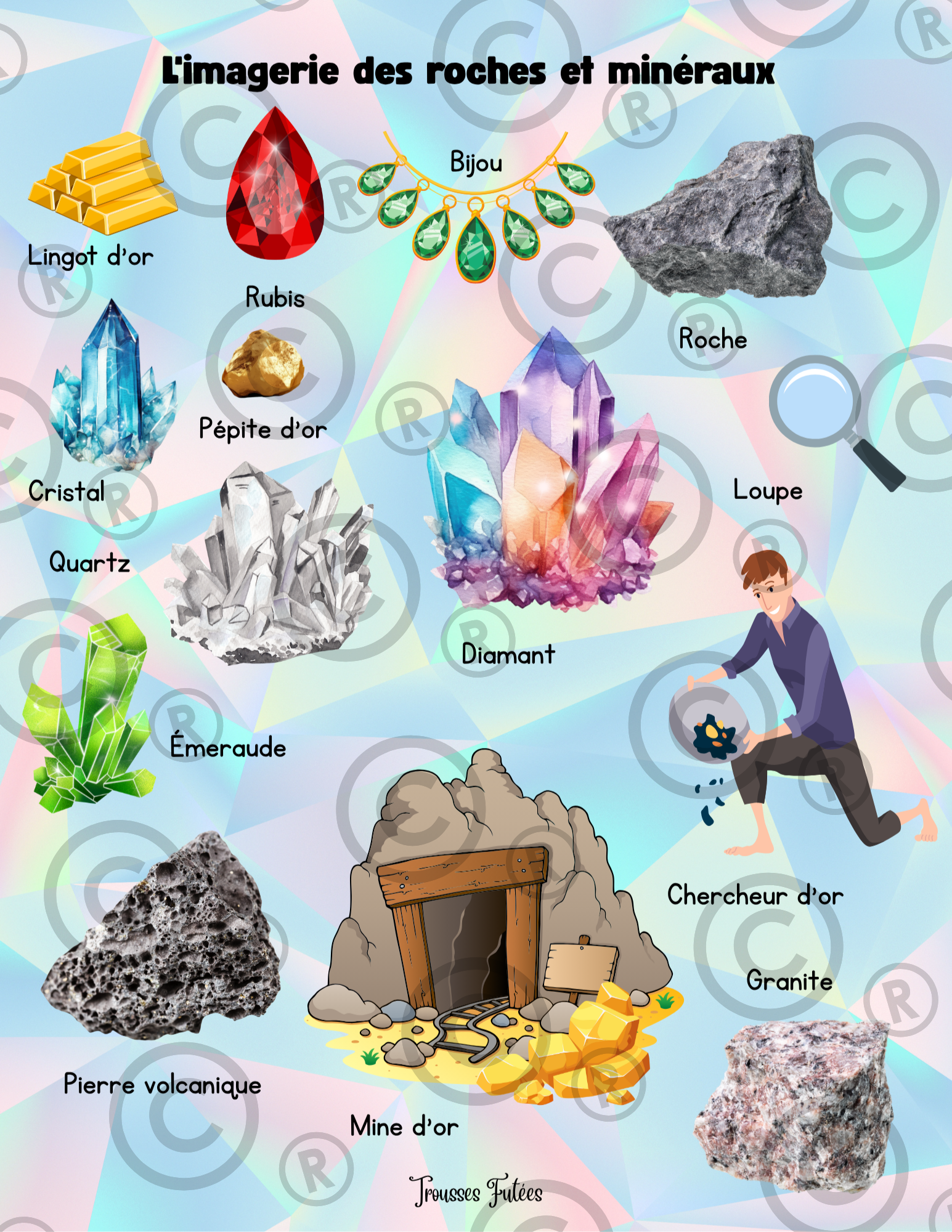 Trousse éducative 1-5 ans comprenant 40 pages d'activités sur le thème des roches et minéraux!