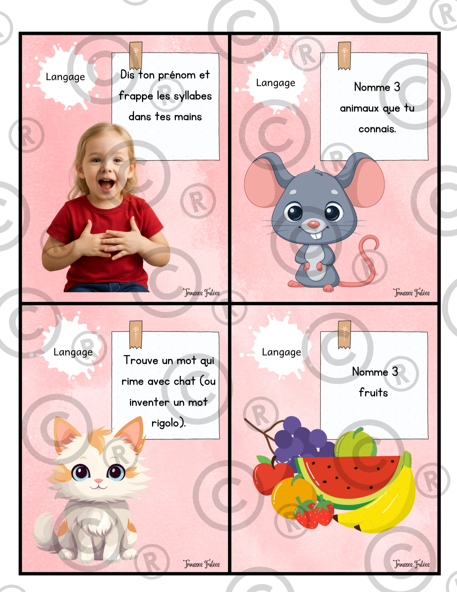 Les cartactivités sont de petites cartes simples et ludiques qui proposent des mini-jeux rapides et adaptés aux enfants de 3 à 5 ans.